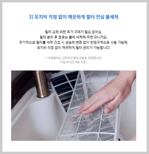 - 필터교체를 위한 추가 구매가 필요없음.