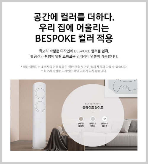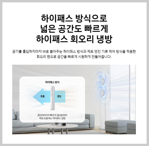 일단 에어컨의 디자인부터 한번 이야기 해보겠습니다. 색상은 블레이드베이지, 블레이드그레이, 블레이드화이트 이렇게 되어있는데 어떤색상을 선택하던 디자인이 깔끔하기 때문에 인테리어를 해치지 않고 잘 어울리는 디자인이라고 생각합니다. 그리고 지금 에어컨들의 성능은 이미 정점에 올랐다고 생각하는데요. 삼성 에어컨 같은 경우는 공기를 흡입하자마자 바로 뿜어주는 하이패스 방식으로 넓은 공간도 빠르게 시원하게 만들어 줍니다.