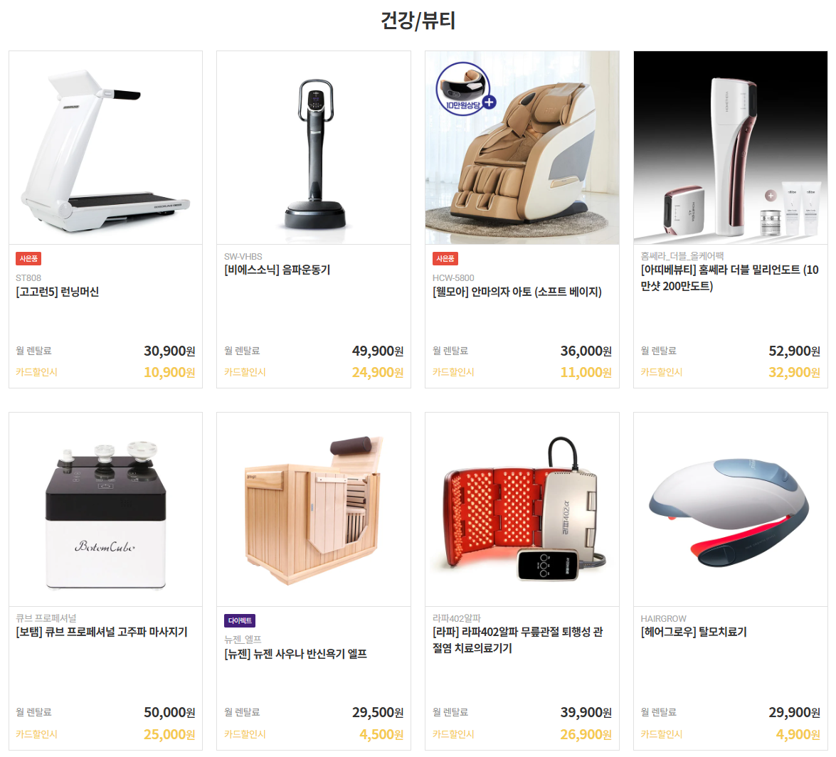 또한 저희 홈페이지에는 수많은 가전제품들 그리고 애견용품, 전기자전거등 많은 제품들이 렌탈제품으로 등록이 되어 있습니다.